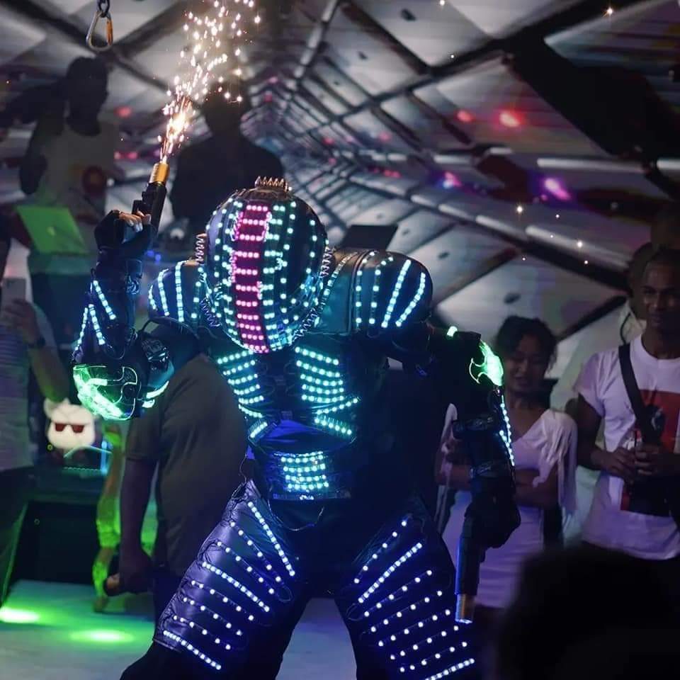 Spécialisés dans la création d'ambiance, nous proposons également des performances uniques comme les échassiers robots LED et cracheurs de feu.
